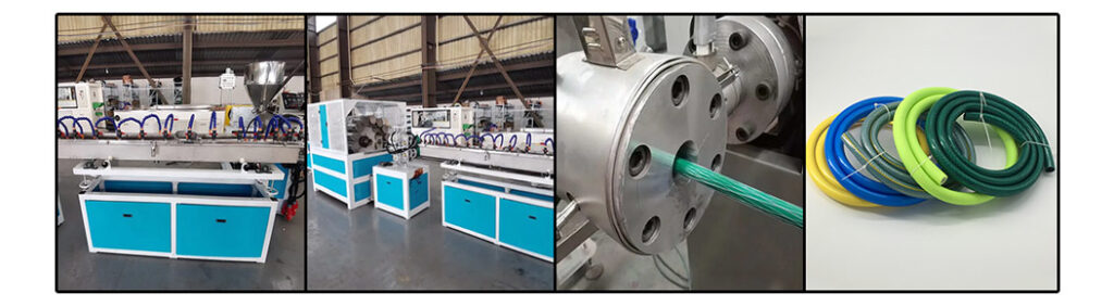 This line is designed to produce PVC fiber reinforced hose, the wall of which is three layers, outer and inner layer are soft PVC, and the middle layer is fiber reinforcement. This kind of hose has good chemical and physical property. And the hose is mainly used for the transportation of high pressure or corrosive gas, and is widely used in the machinery; coal mine, oil, chemical, agriculture irrigation gas and building.